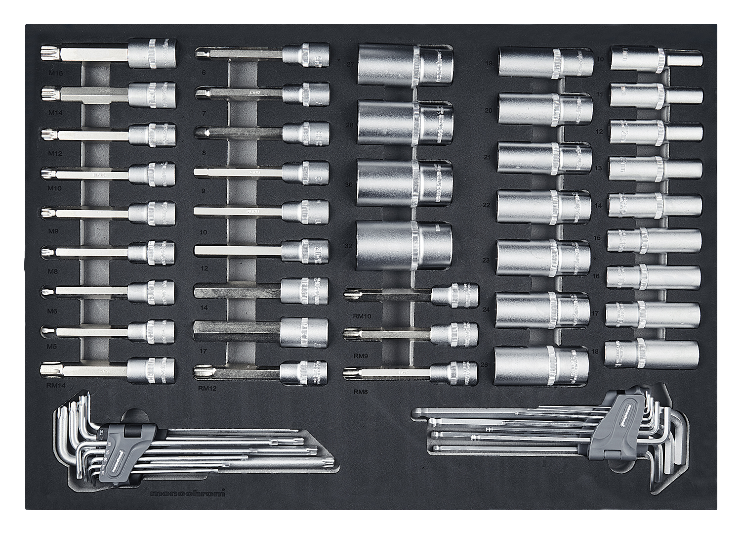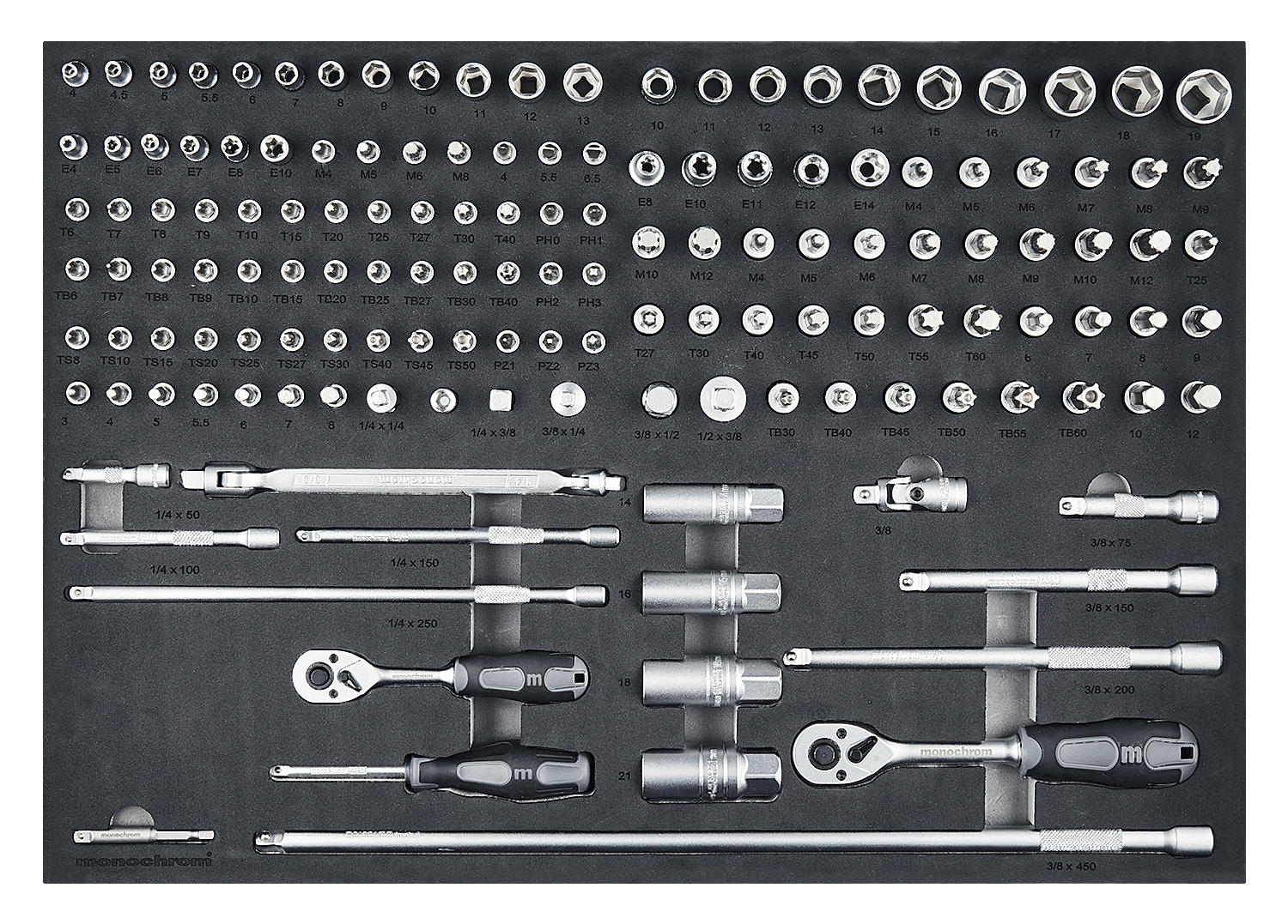 Steckschlüsselsatz 3/8“ lang + Ratschen-Ringmaulschlüssel-Set 66-teilig